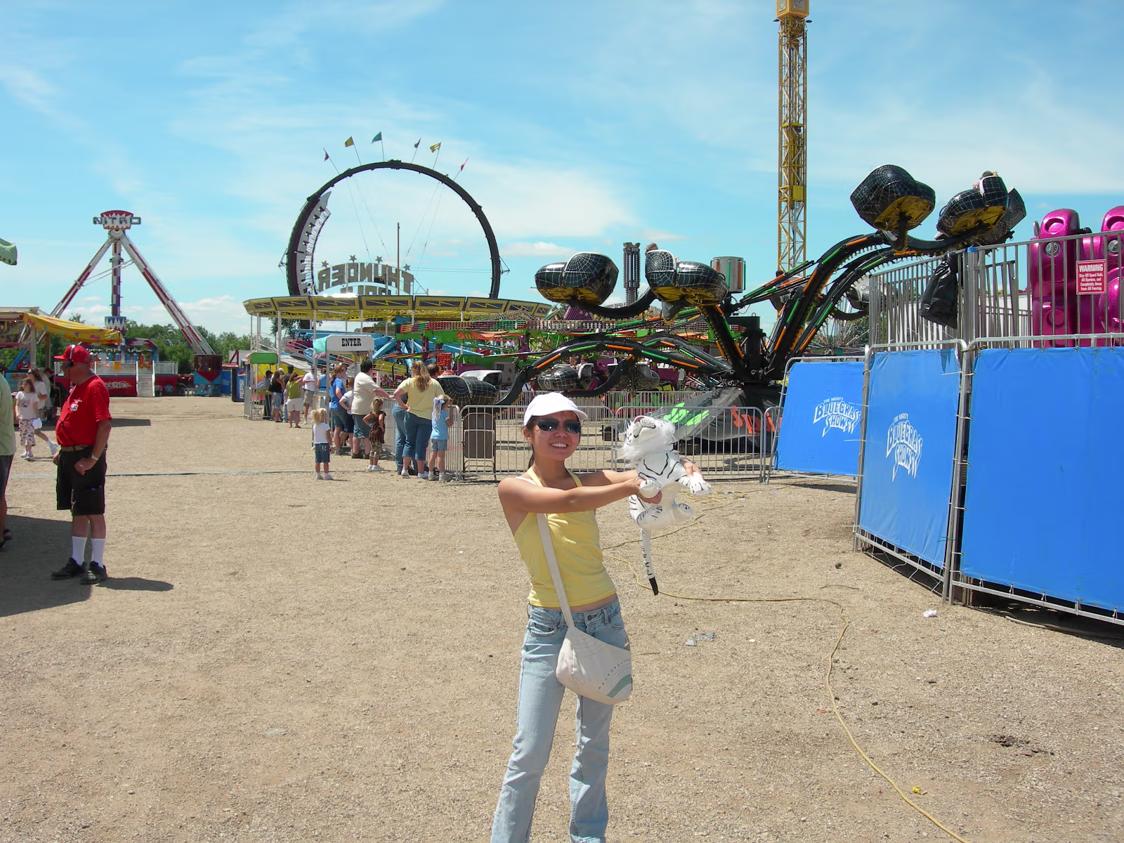 Hanhan's visit begins on the midway. Hanhan LOVES her funnel cake! A view from high atop the double ferris wheel. The winner! Hanhan with her white tiger prize. Eating again! Lemon shake-up, corn dog, and onion rings. Watching the tiger show. The tigers live in Peoria! Feeding a camel at the petting zoo. Ready to feed the goats. Hanhan likes big snakes like this albino python. Hanhan would like a ride in this Hummer. We are ready to call it a happy day and go home now. Labels Hanhan's Master's CeremonyIndependence Day