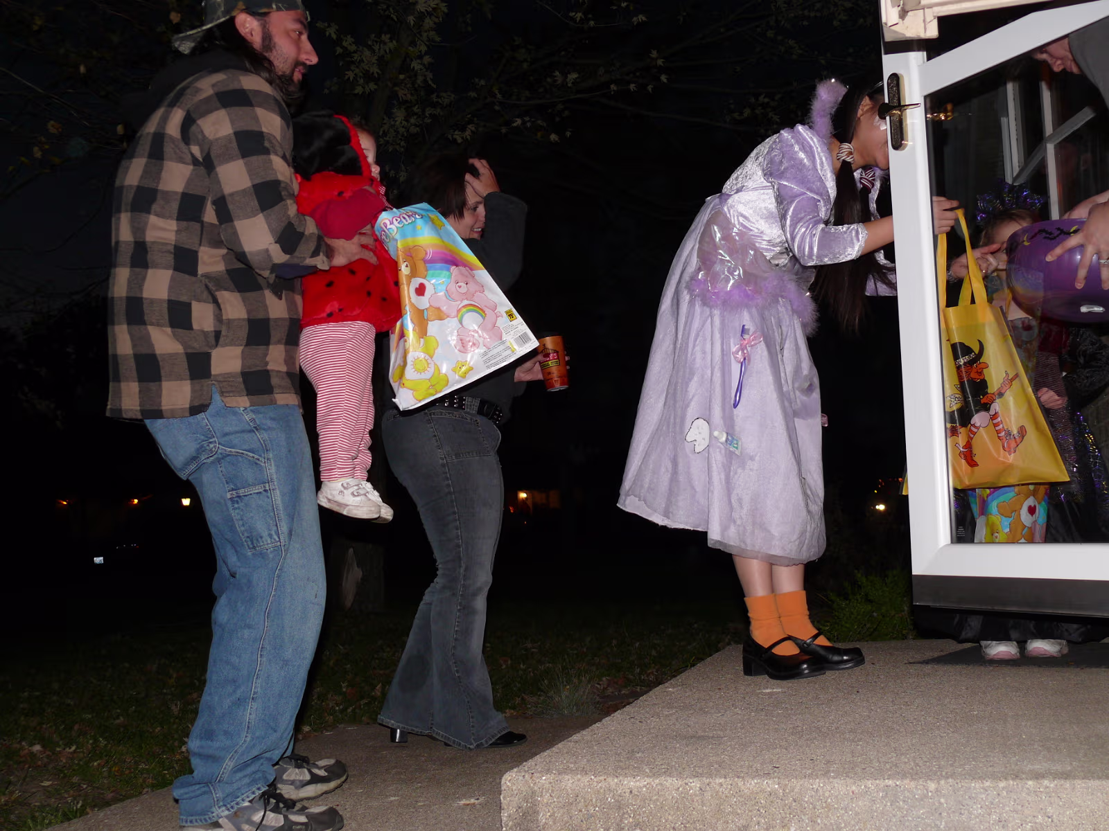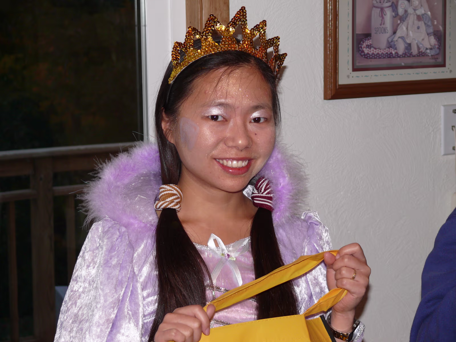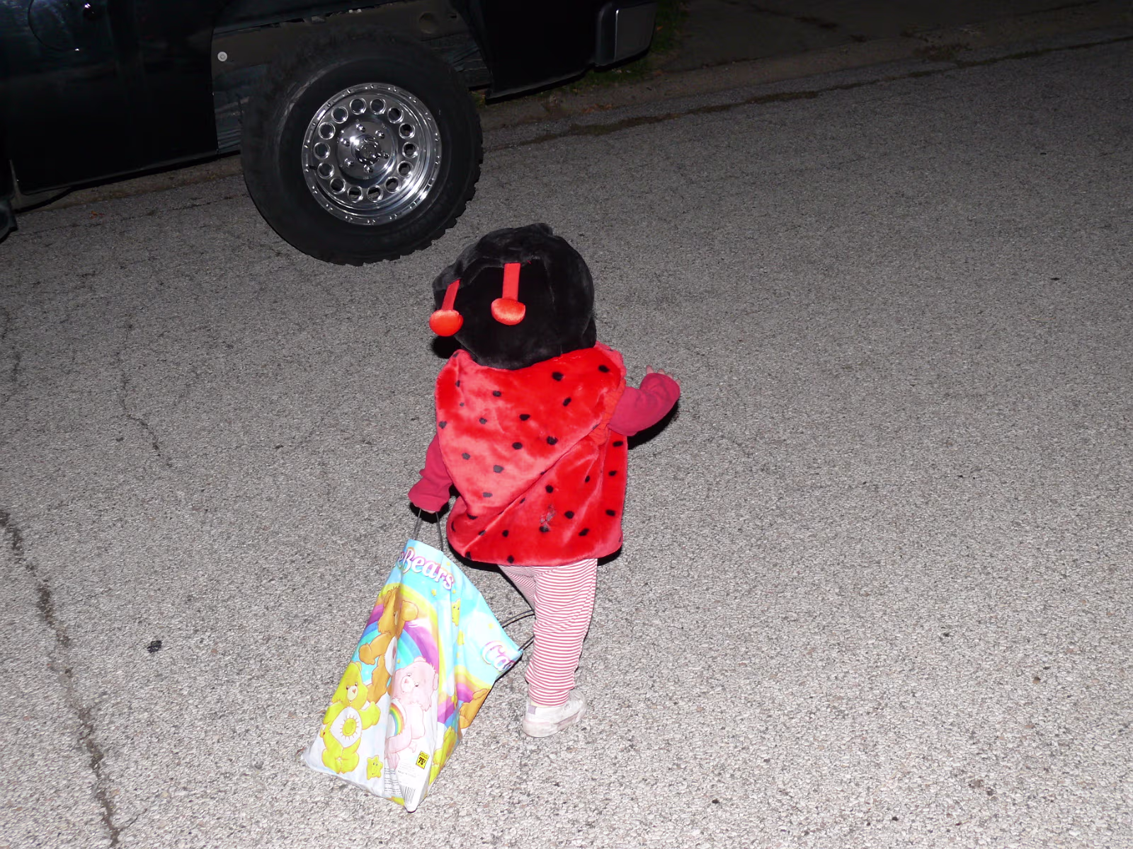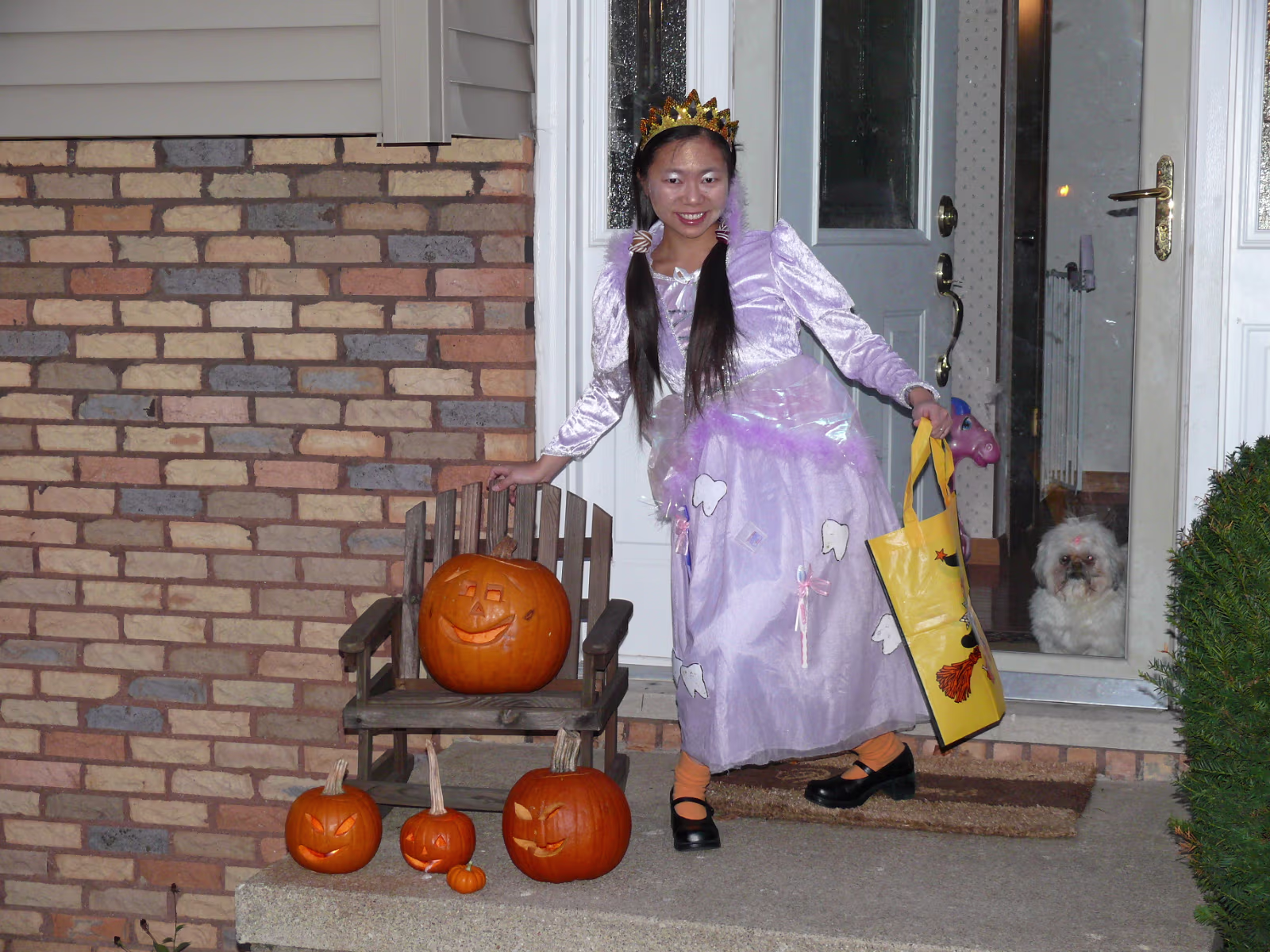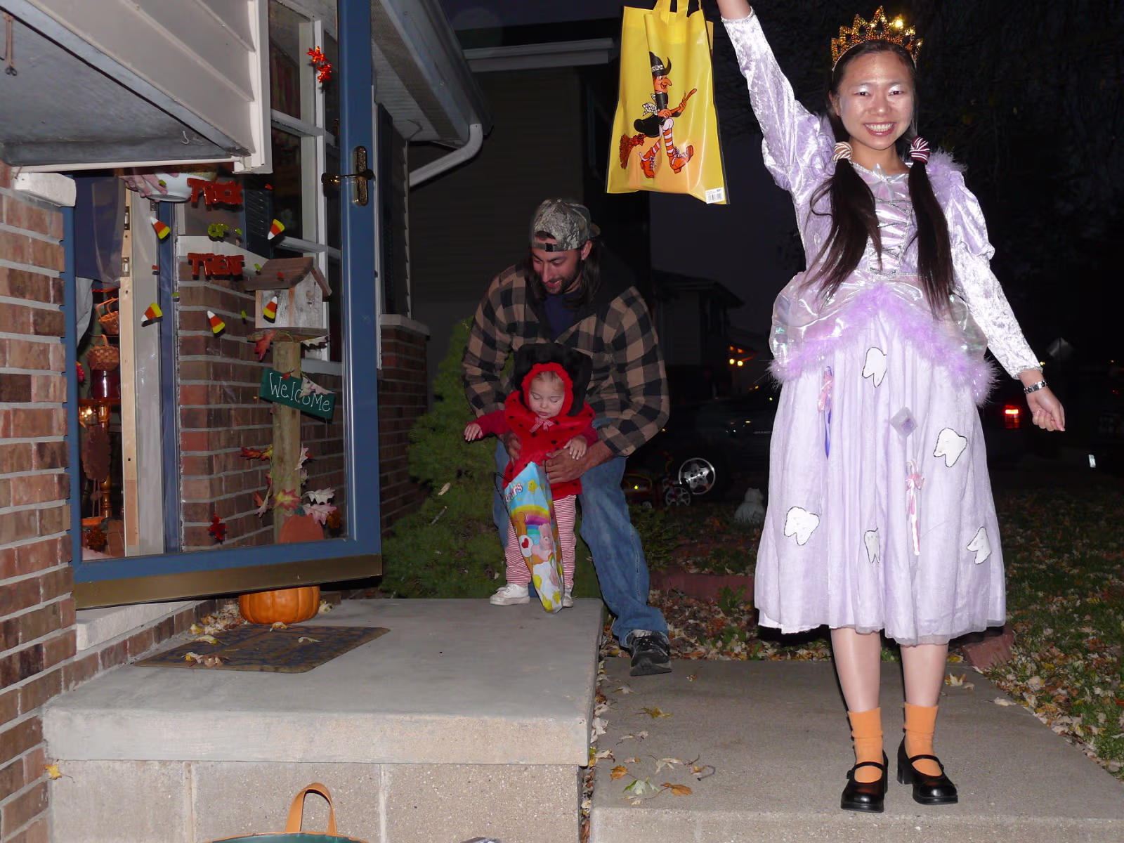 Hanhan having her makeup applied by Linda. The Tooth Fairy is ready! Tooth Fairy and Jack o' Lanterns A dinosaur, senorita, and tooth fairy. A midnight princess and the tooth fairy. Hanhan's first house. Success! Candy in the bag! More trick or treat loot! More candy, more smiles! Trick or treat team heading to another house. Getting the treats! Tina, Brian, and their ladybug. The Halloween float. Decorations on the back of the float. A tired ladybug. Waiting her turn to get a treat. A hotdog looks at the tooth fairy. Three scary jack o' lanterns. Boo! Did it scare you? Ladybug dragging her bag of candy towards another house. Labels My FamilyHanhan's Master's Ceremony