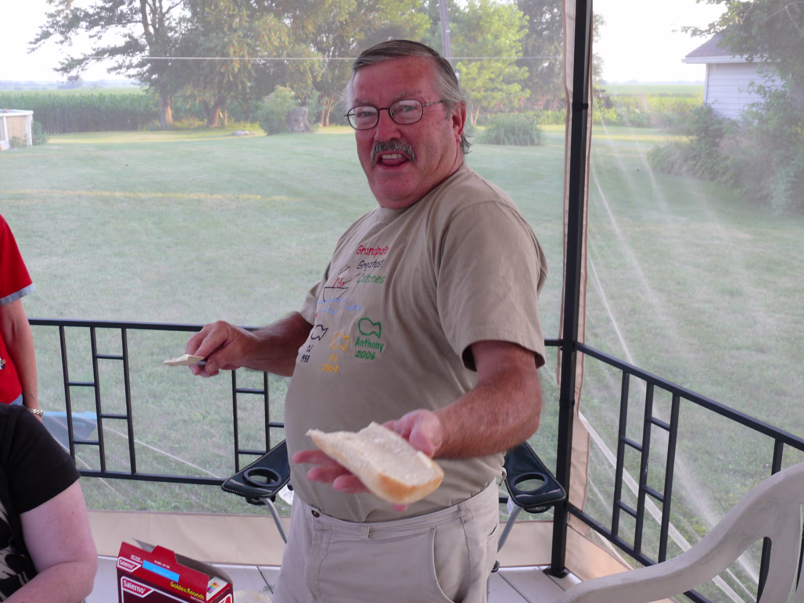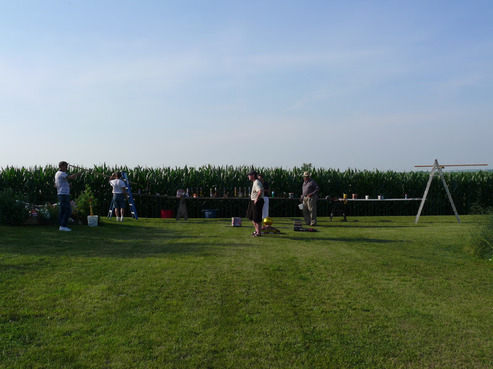 Getting ready to build the fireworks launching pad. Gary shooting a bottle rocket from his hand. Sharon pulling a trailer load of fireworks for the evenings celebration. Getting the fireworks display together. Takes lots of work to get this many fireworks set up and ready. Sharon looks worried about the corn becoming popcorn later tonight! Hanhan and her American flag firecrackers. American firecrackers are attacking Hanhan, run! Hanhan in Ed and Sharon's yard. Hanhan is getting out of the pool for a while. Scott and Susan enjoying a cool snack of fruit and dip. Don preparing a sandwich with his special technique. Hanhan, Cassie, and Tré playing in the pool. One of the fireworks shot during the evening. An aerial display caught as it explodes. Independence Day family picnic begins. Special decorations for Hanhan & Gary's anniversary. The surprise cake, card, and ribbons that Sharon and Ed gave us. Most of the family are enjoying a rest after the picnic lunch. A view of the crowds at the park. Ha! Labels Heart of Illinois Fair 2007Independence Day 2009