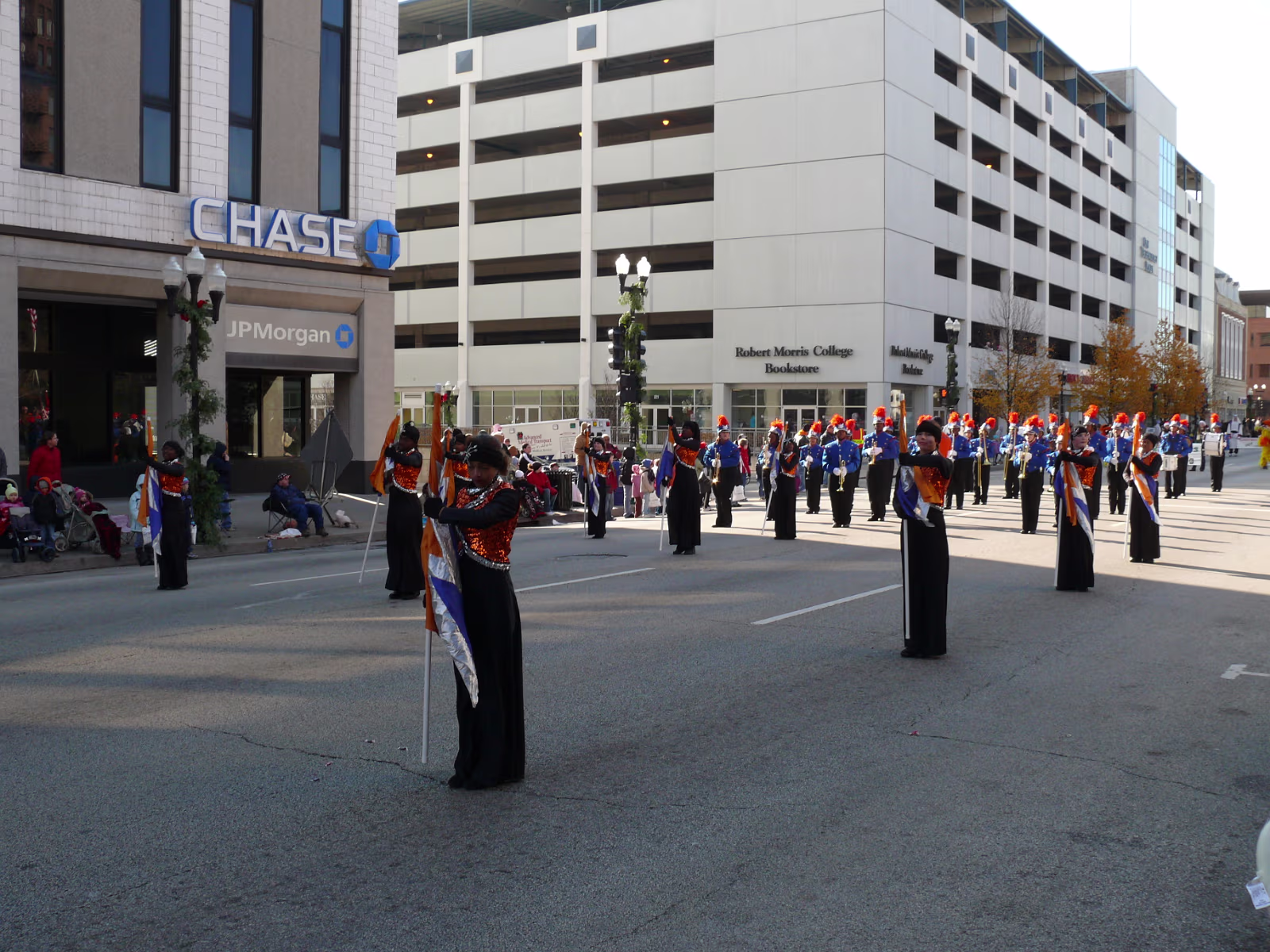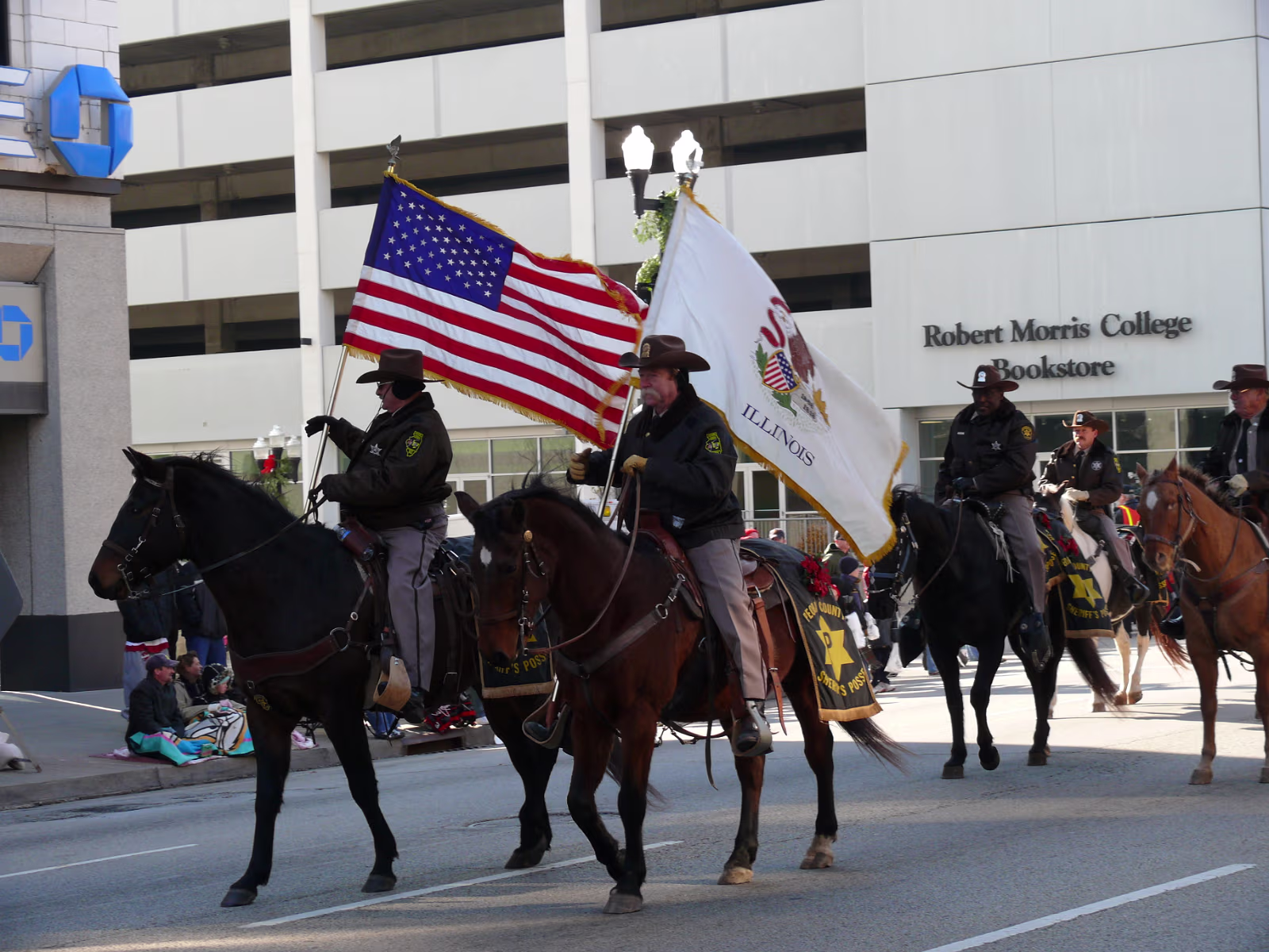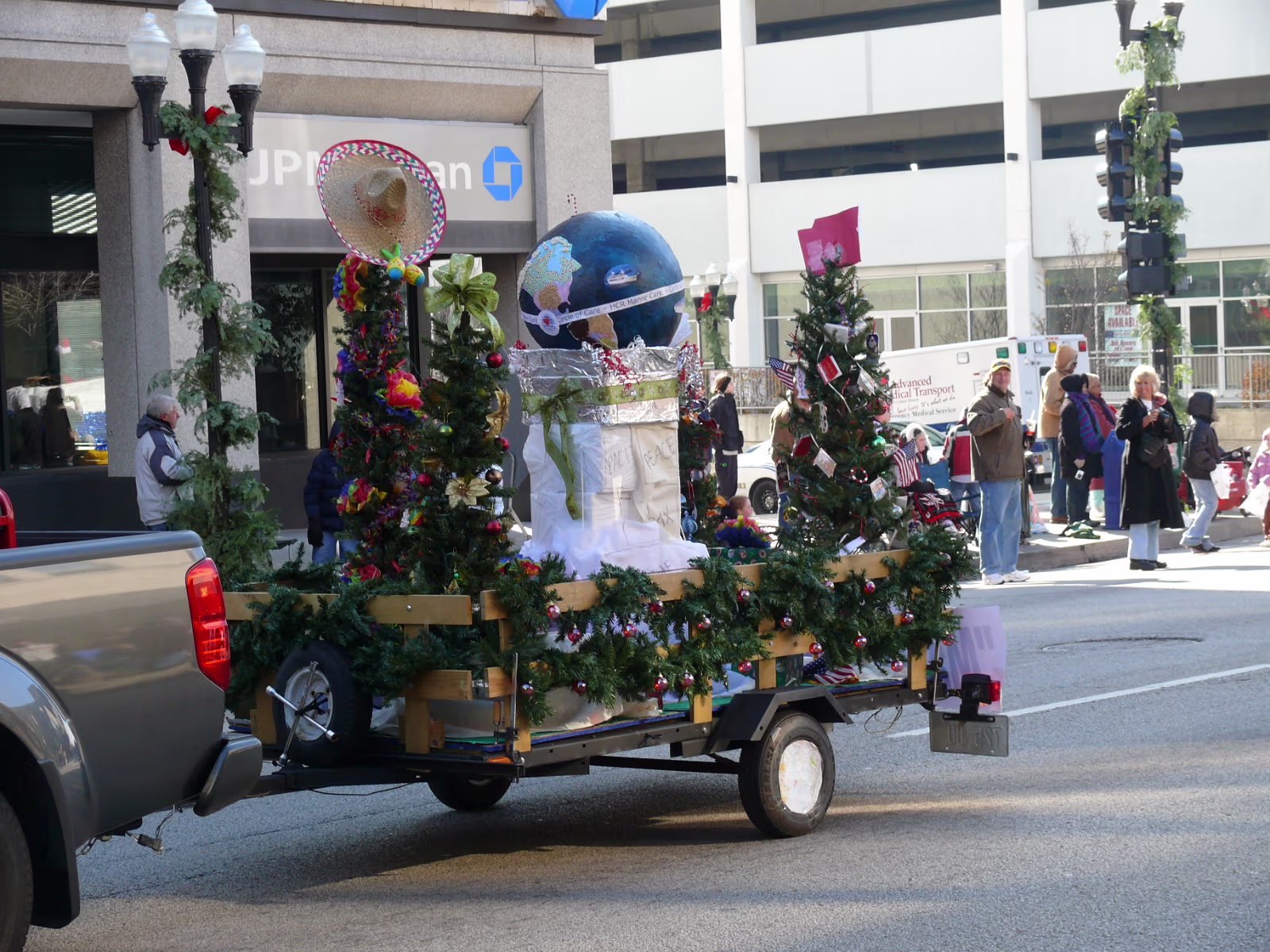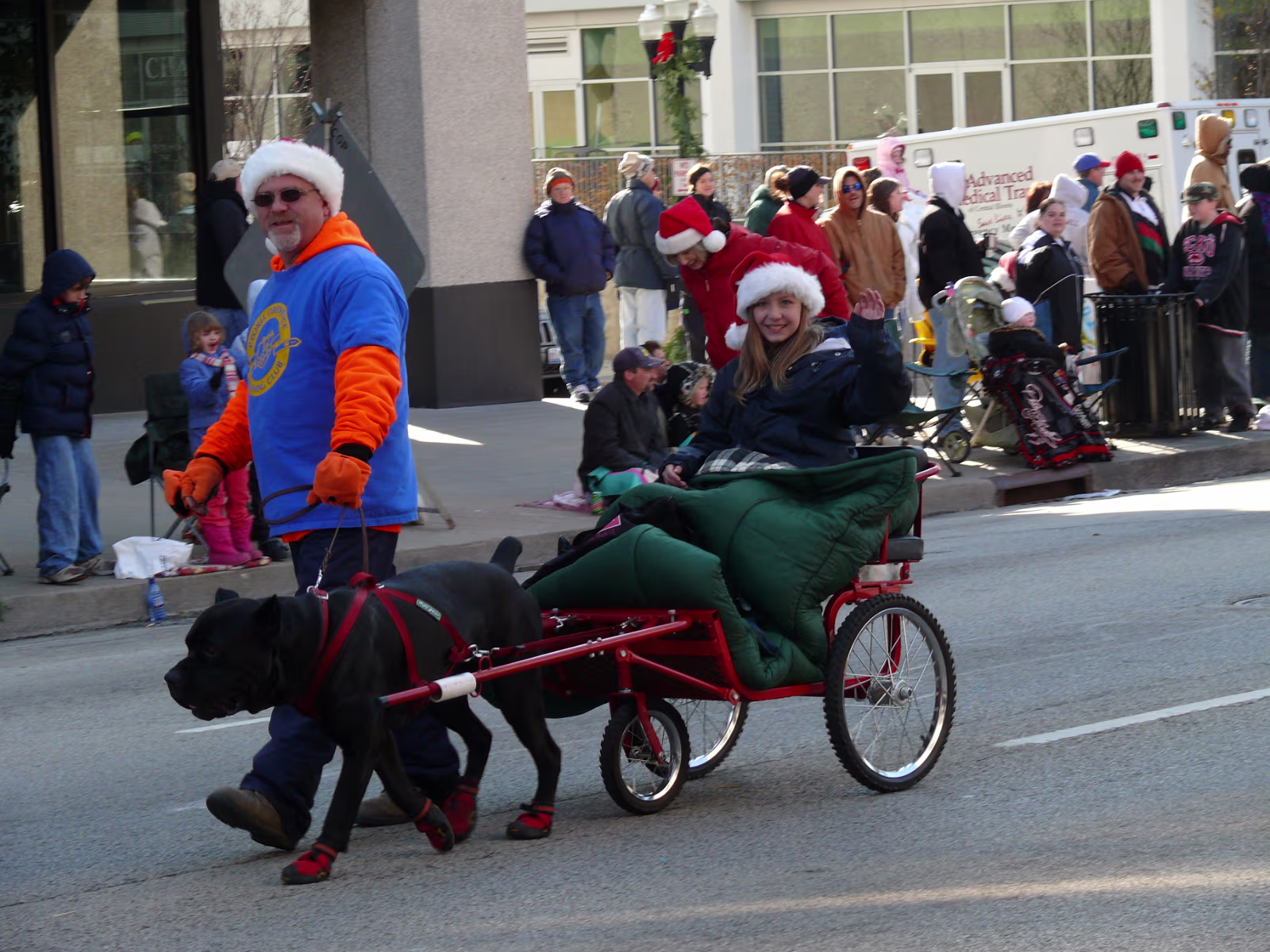 The parade begins! The mounted Color Guard. Navy veterans float. Antique car with Mayor and Congressman. A girl on stilts. Christmas Express Classic car with a 'King' dog in the rear. A parade is not complete without a clown. The Manual High School band. Two Chinese lions. A closeup of one lion. Christmas around the world. The Flintstones Christmas Tree float. Snowman throwing snowballs. Girl Scouts around the world. A dog sled. Note the booties! Cinderella's coach. Two old ladies in their sleigh. Labels Random Illinois PhotosHammer Family Thanksgiving 2007