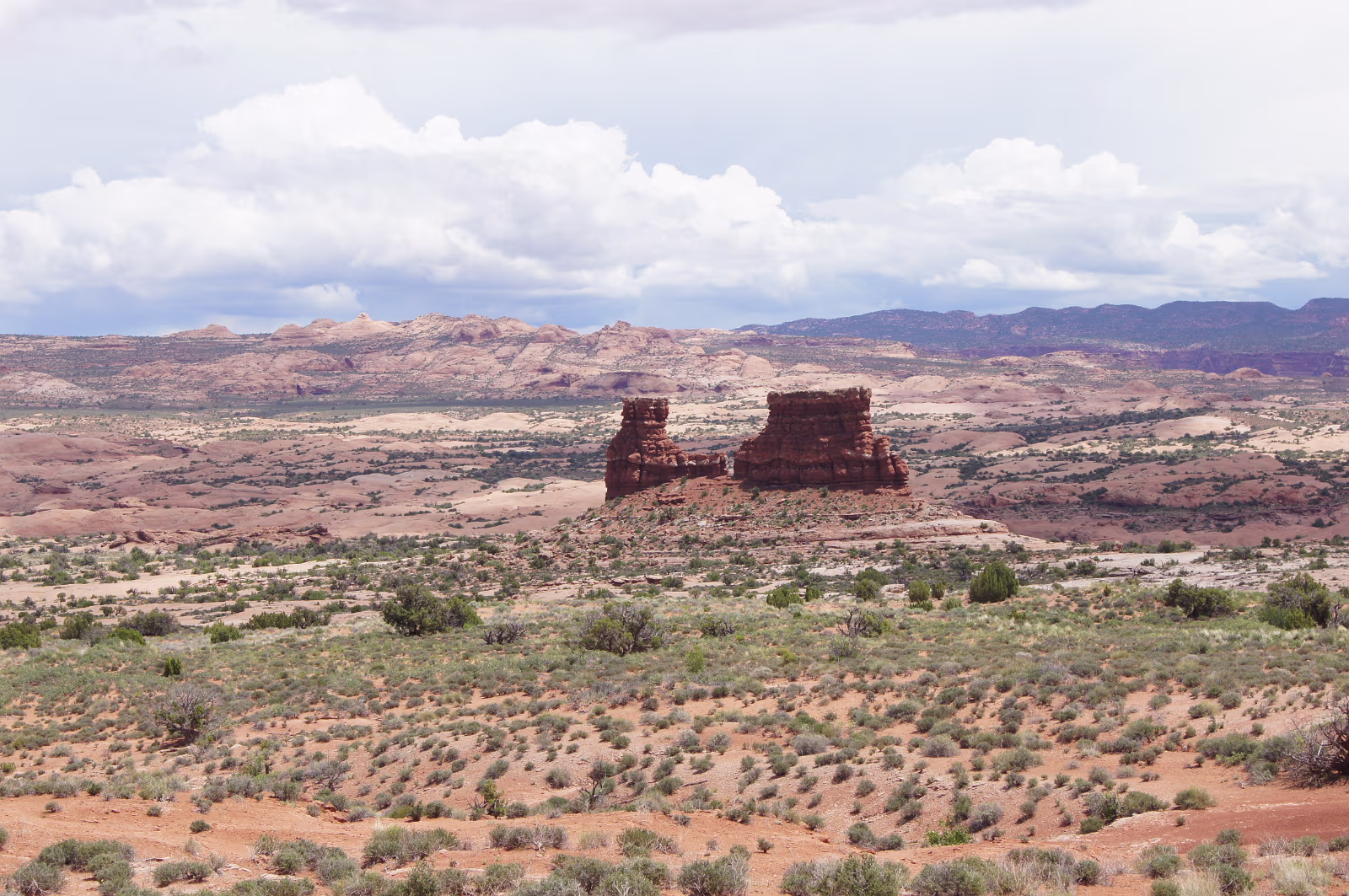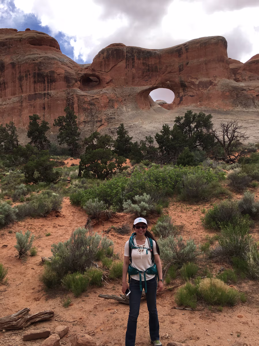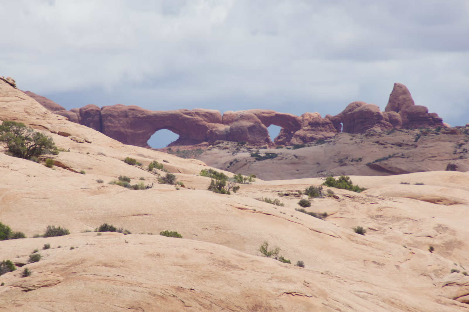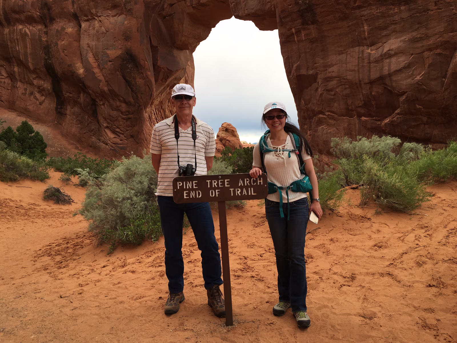 Our 5th park is ready for our inspection! The entire area is red, it's all entrada sandstone. This trail goes between what are called 'fins'.These are harder sandstone that were exposed by erosion to look like a fish fin. The first of many arches we were close to in the park. One day these fins will be arches.For now, they are just pretty. This arch nearly doubled in size when a huge rockfall took place a few years ago. Park Avenue, a favorite view and picture. The entire park is filled with odd, spectacular formations like these. Two buttes appear from nowhere. This is called 'The Three Gossips' Courthouse Towers.Look at the size of this formation. Closeup of the Three Gossips This is supposed to look like a ram (sheep) Another strange yet beautiful formation. This is 'The Windows' area of the park. Balanced Rock.It could fall at any time. One arch is there, the other to its left is just forming.Hanhan has the water to wait until it is done. Not the end of the trail for us! Looking through rock at rocks. This is 'Fins Forest' Labels Mesa Verde NPCanyonlands NP
