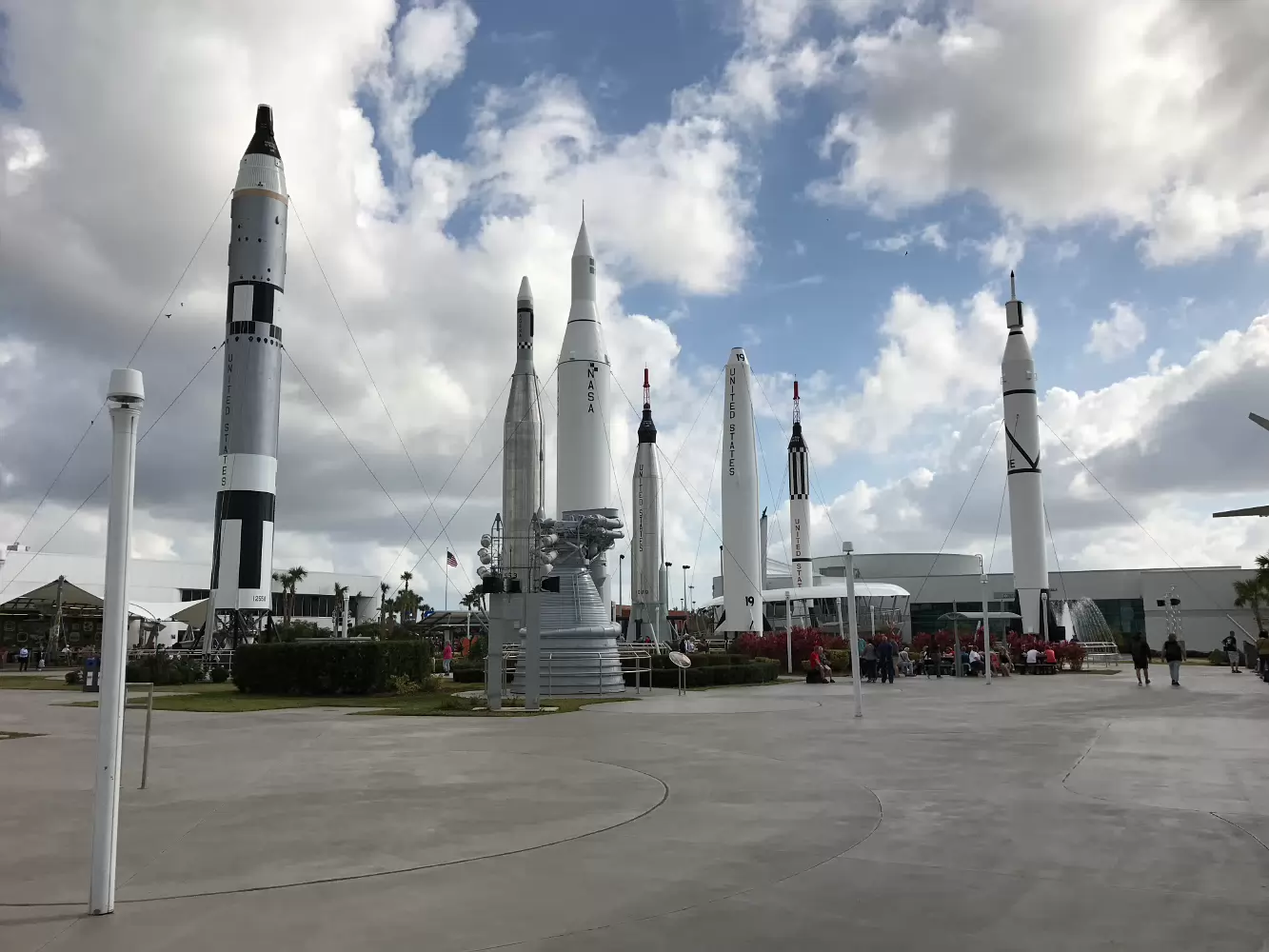 You walk under the length of an entire Saturn V rocket complete with Apollo command module.