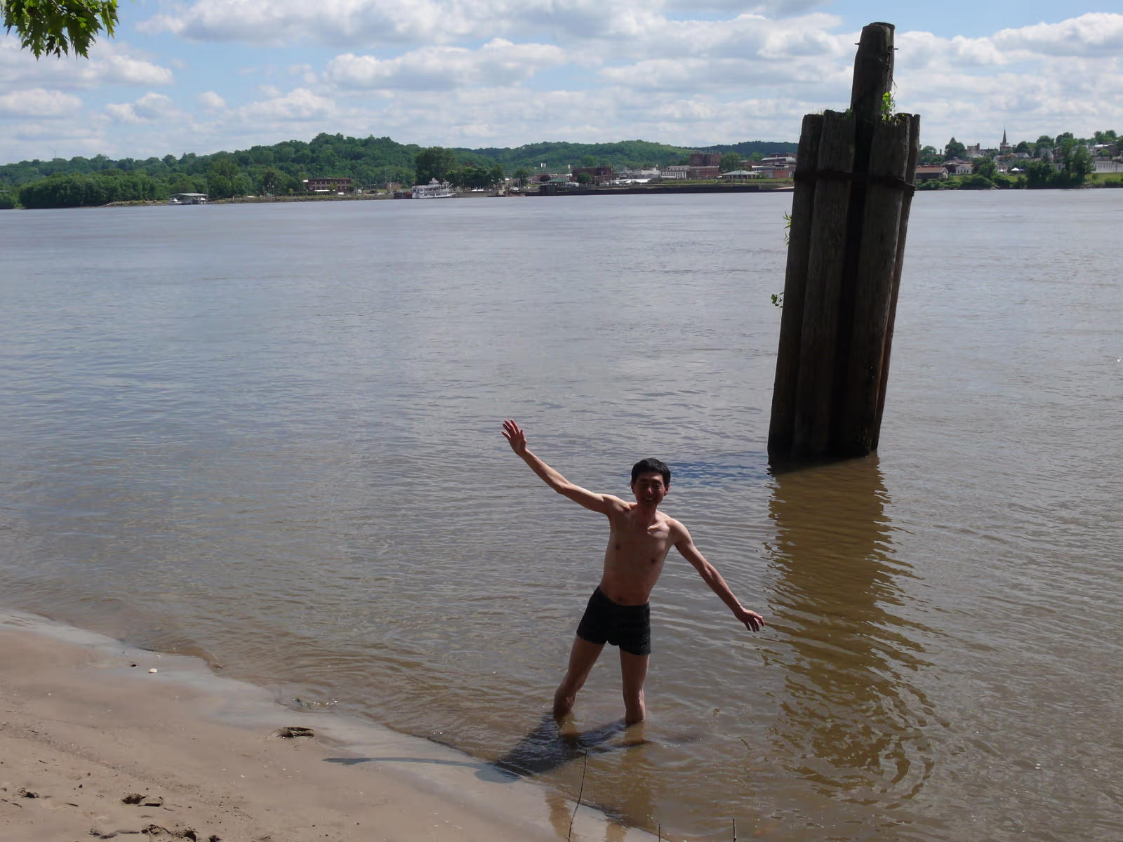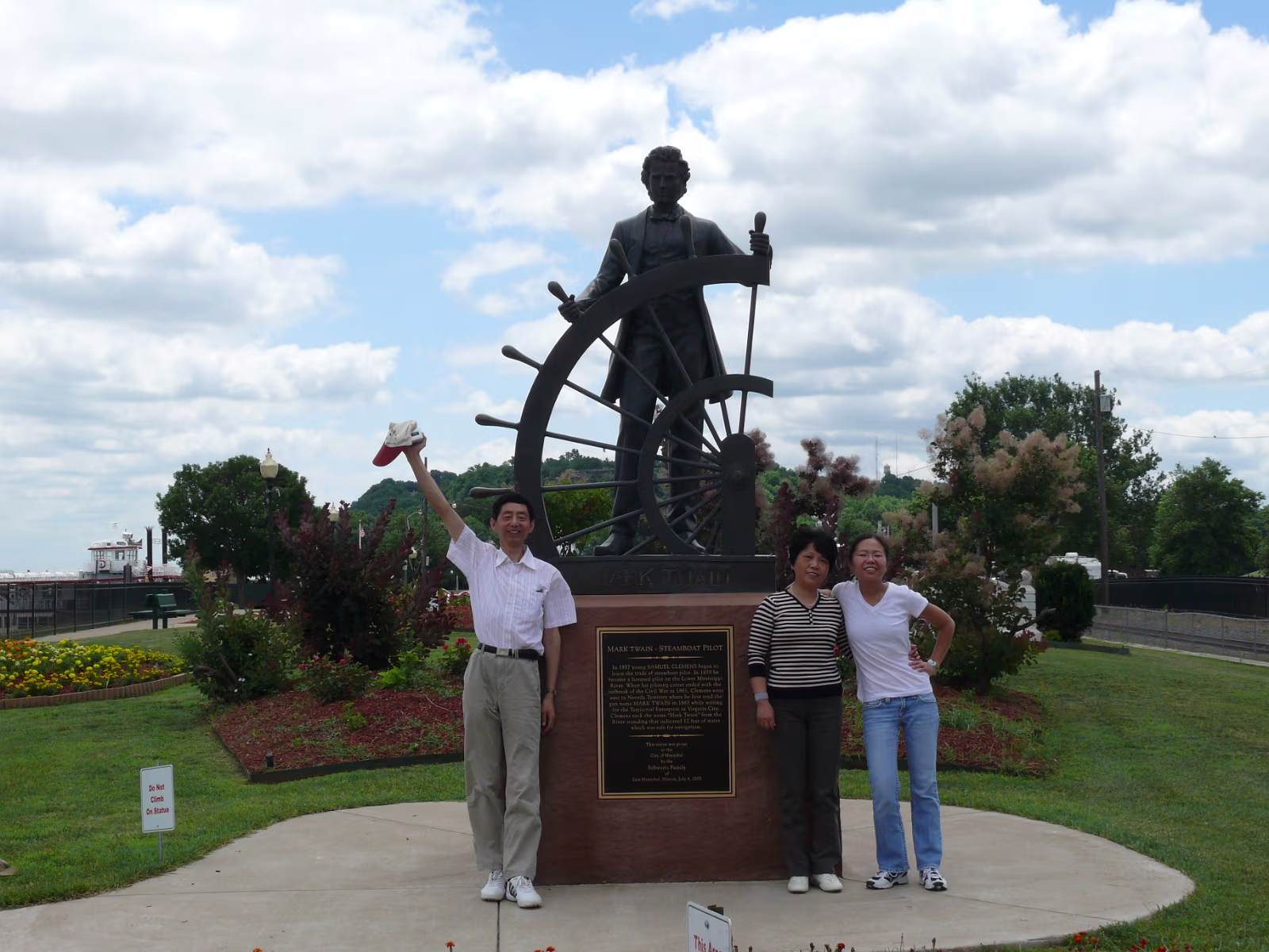 Mom with bike police, she likes the fat one! The Zhang family in Hannibal. Hanhan's parents enjoying Mark Twain's hometown. The sign explains Hannibal. Gary & Hanhan are having a nice day away from work. Hanhan and her dad looking for her mom. The lighthouse above the trees. At the founding point of Hannibal. The Zhang family at the Mark Twain memorial. On the Mississippi waterfront. Mark Twain is big here. Tom loves Becky! Becky loves Tom! Hanhan and the fishing pond. A view from Lover's Leap. Hanhan's dad at Lover's Leap. Hanhan and her mom over Hannibal. The Mark Twain riverboat. Chairman Mao's wish come true, Hanhan's dad in the Mississippi. Hanhan and mom play in the Mississippi. Labels Chicago July 2008Fireworks Trip