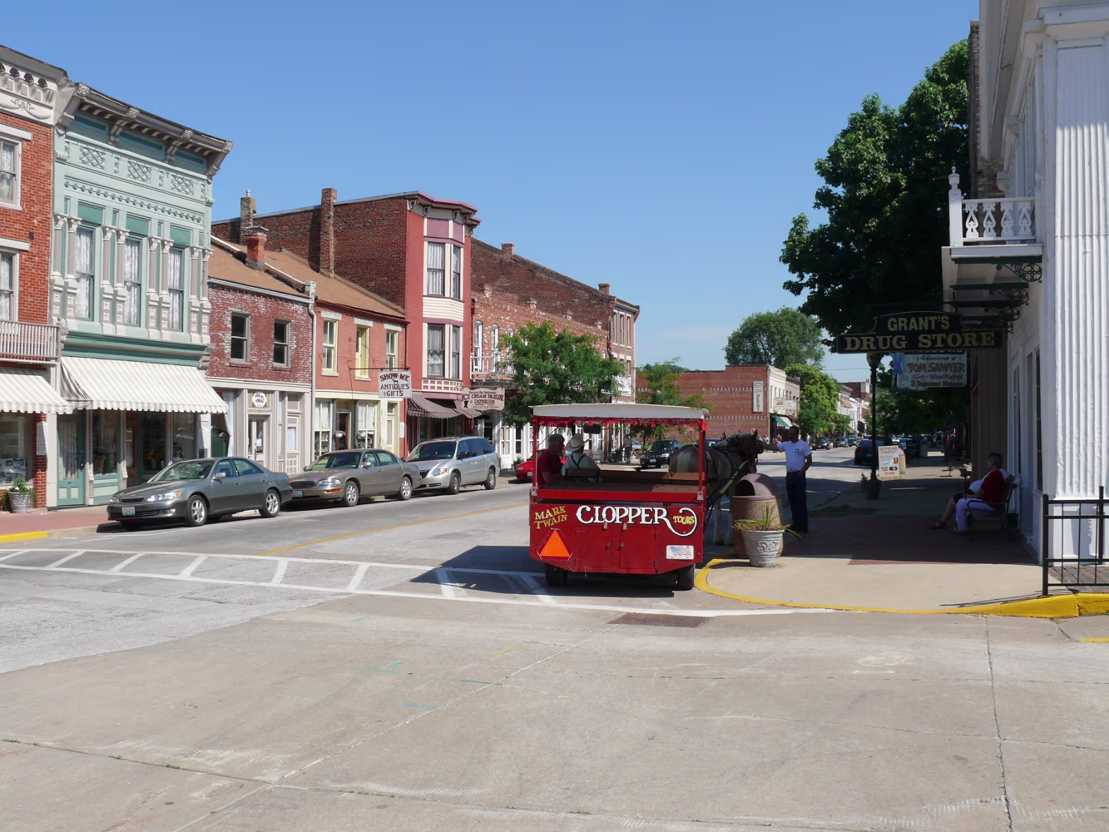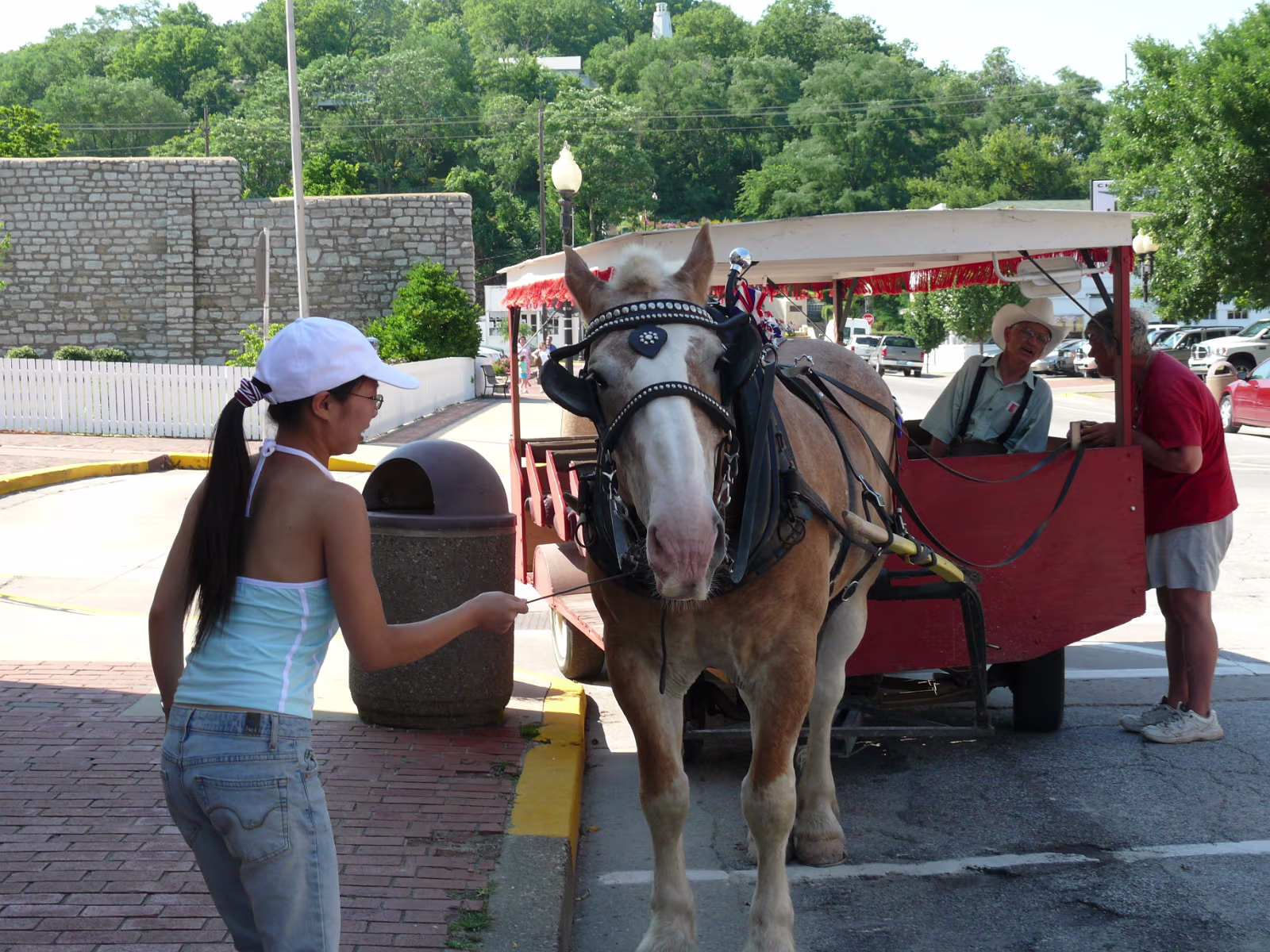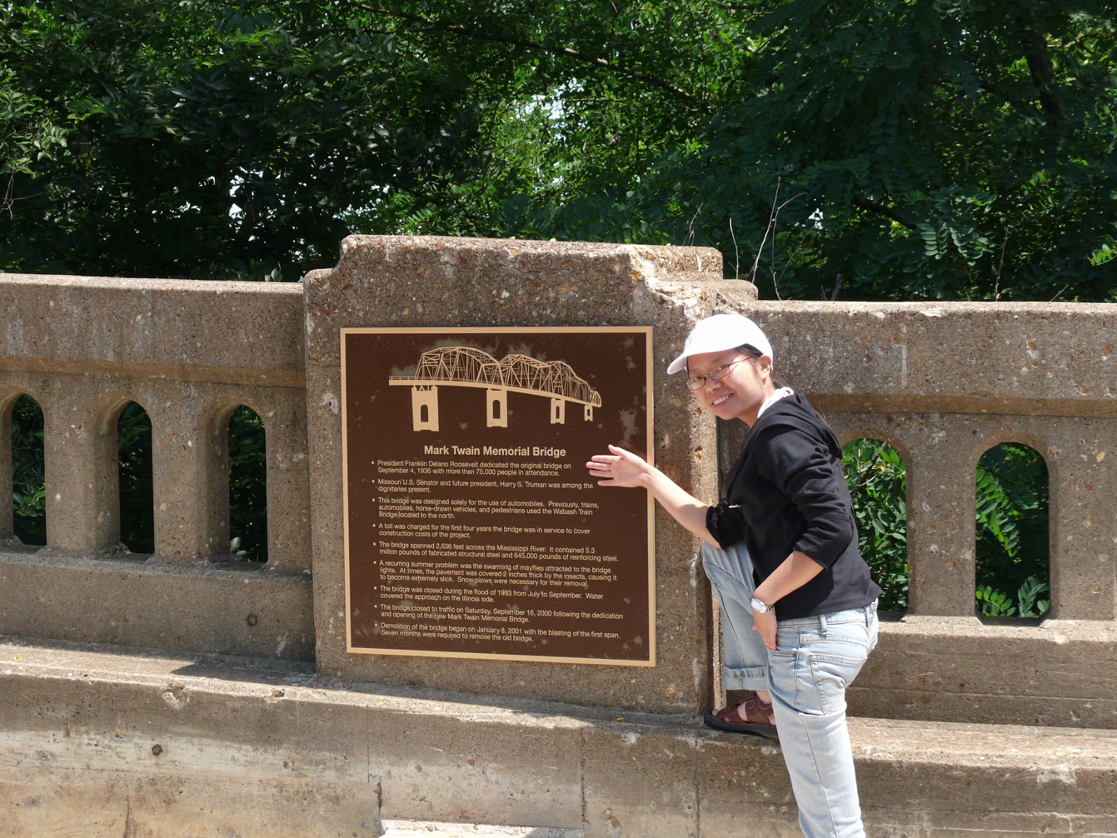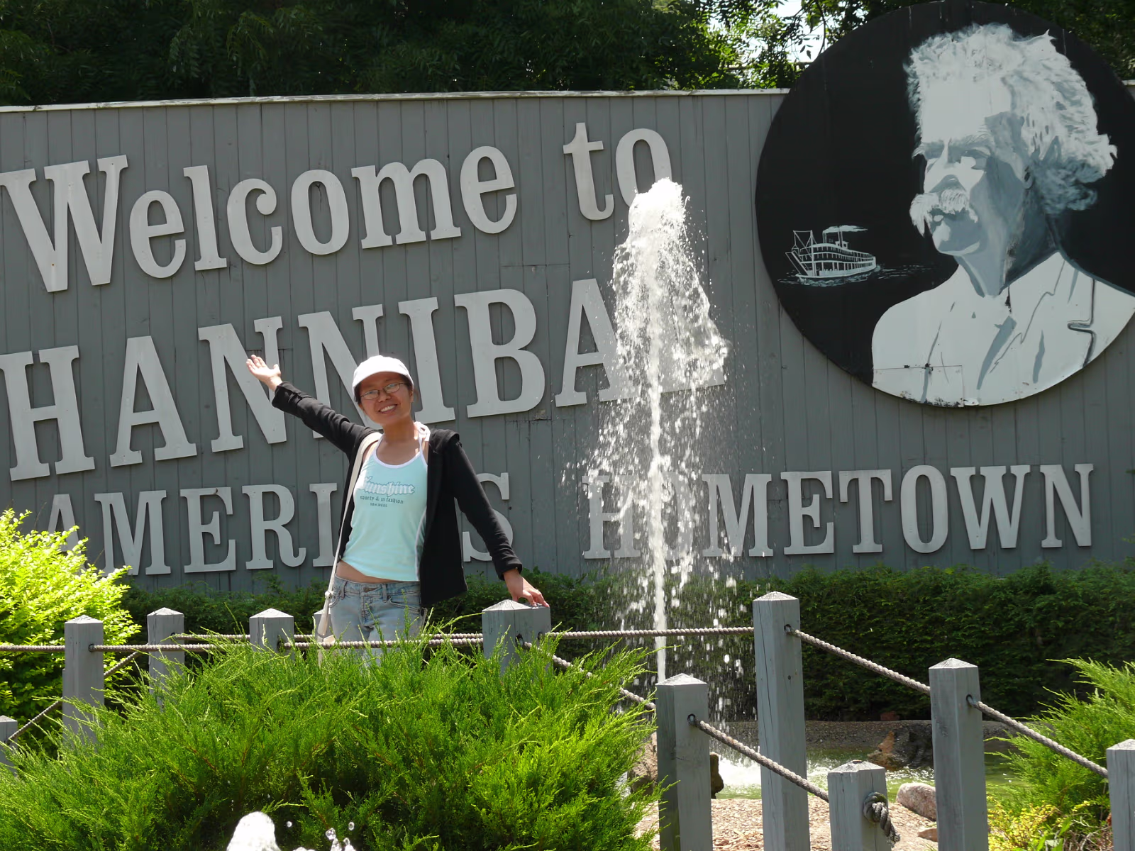 Hanhan at the Mark Twain Memorial Bridge, it's gone now but the plaque lives on. Hanhan in Becky Thatcher's Butterfly garden. A steamboat on the Mississippi River. Hanhan in front of Hannibal and the Mississippi River. Hanhan welcomes you to Mark Twain's hometown. On the way to the fireworks shop to get Independence Day supplies! Hanhan wants one of the huge fireworks in the shop. She has her basket and is shopping for more fireworks. Hanhan with the load in the rear of the van we drove. Hanhan in front of the haunted house that was mentioned in Tom Sawyer. Hanhan is looking for the skeleton. In front of Becky Thatcher's house, she was Tom Sawyer's first sweetheart. Hanhan in front of the famous fence from Tom Sawyer. Ed & Jeff in front of Mark Twain's boyhood house. Tom Sawyer, Becky Thatcher, and Hanhan. Looking down the old main street. Hanhan feeding the horse that pulls a carriage around Hannibal. After feeding him, Hanhan makes friends with the horse. In front of the old friends, Tom Sawyer and Huckleberry Finn Hanhan and Mark Twain. She even got his autograph. Labels Hanibal Trip 2009King's Island