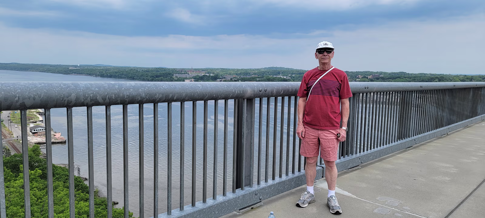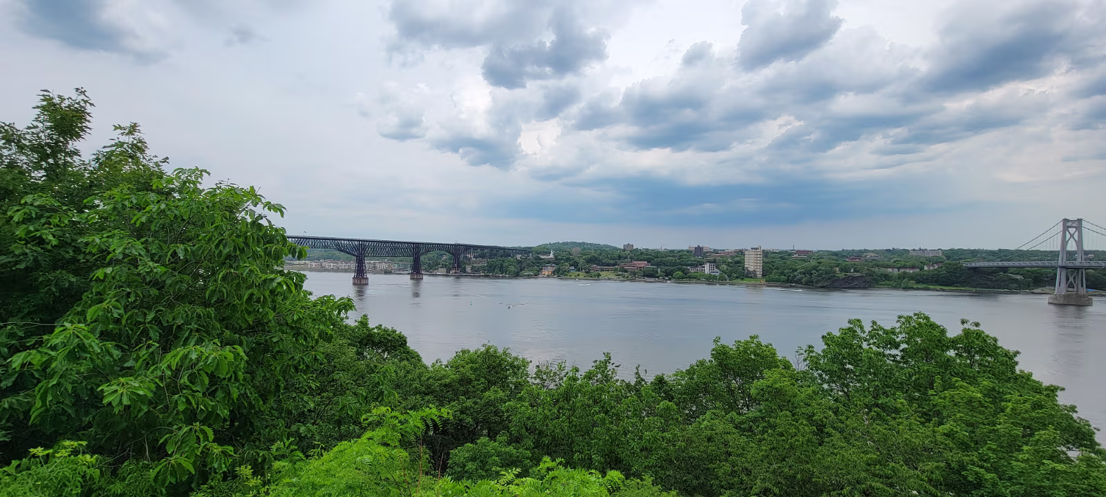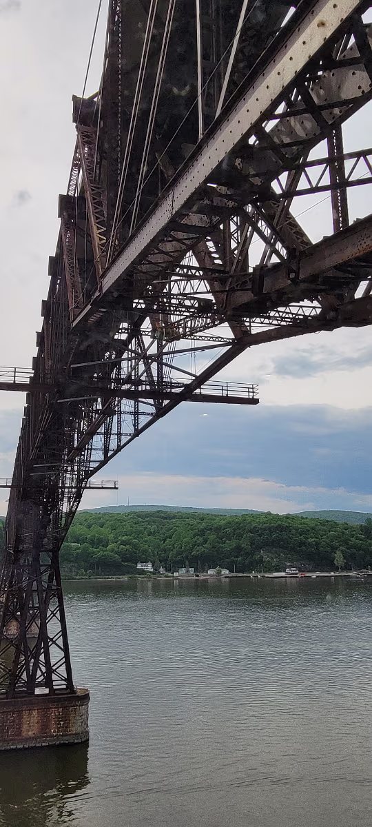 Best french onion soup comes from a diner! Excellent turkey club and the world's finest fries! View towards the Hudson The town with the Mid-Hudson bridge. Hanhan with the Mid-Hudson bridge The Hudson river is a major transport artery, a fuel barge heading upriver. Hanhan at the start of the pedestrian bridge over the Hudson. Gary proudly wearing his purse. The Hudson, even in a town, is beautiful. This was a hot day, but we're in good sprits. No masks! A well placed rest spot with cold drinks nearby. New York has great recreation areas and parks. The Walkway over the Hudson and the Mid-Hudson bridge make a nice view. Hanhan and the Mid-Hudson bridge. This time of year, everything is so green and fresh. A monument honoring those who built the bridge. The old supports and girders for the Mid-Hudson bridge. Thie Mid-Hudson bridge was an engineering feat when it opened in the 1930s The old railroad bridge was built in the 1880s and converted to a walkway in the 2010s A 20 story glass elevator from the Hudson to the deck of the walkway. There are 3 cantilever sections on the walkway bridge. Labels Outer Banks 2023Florida 2017