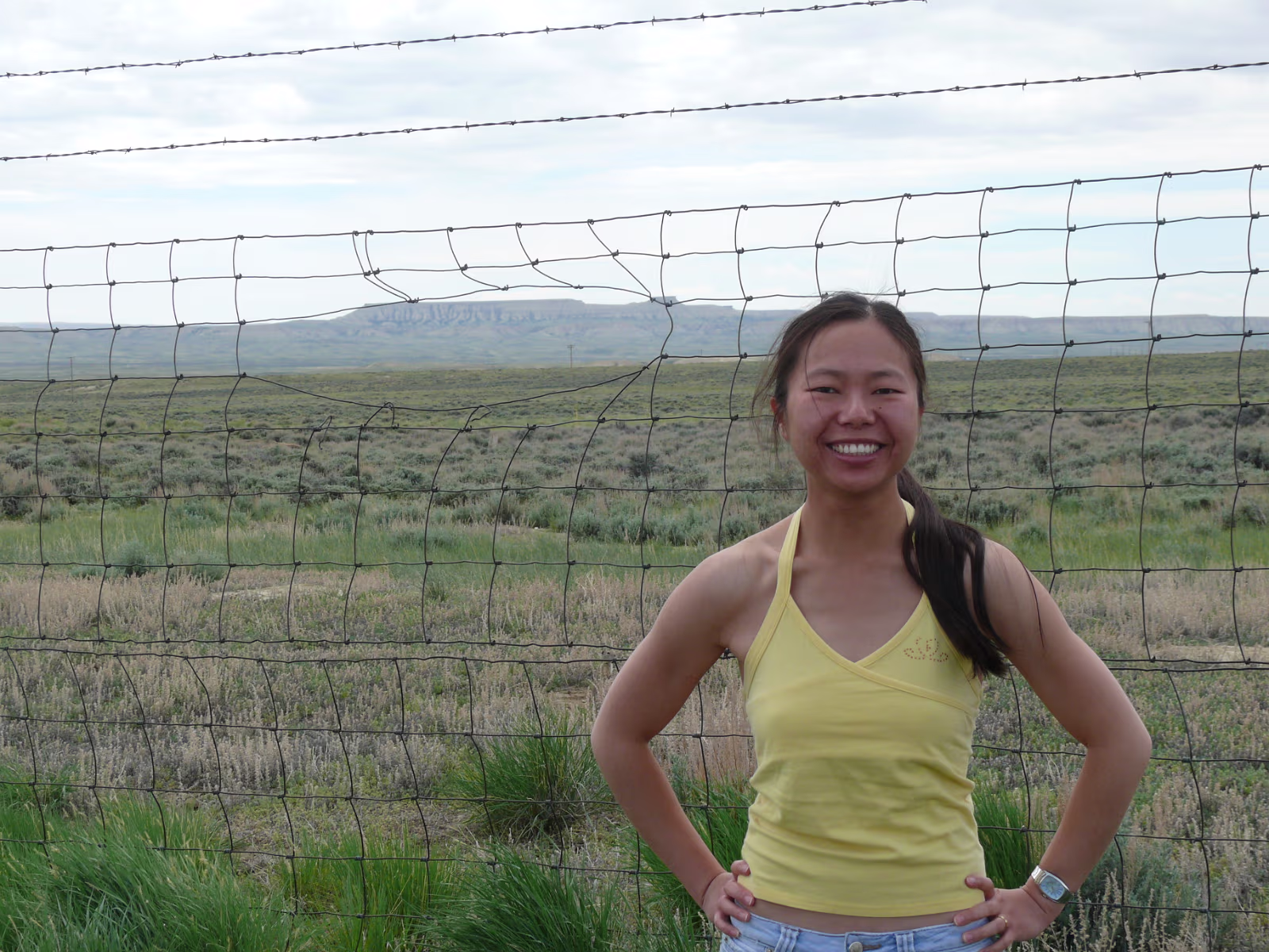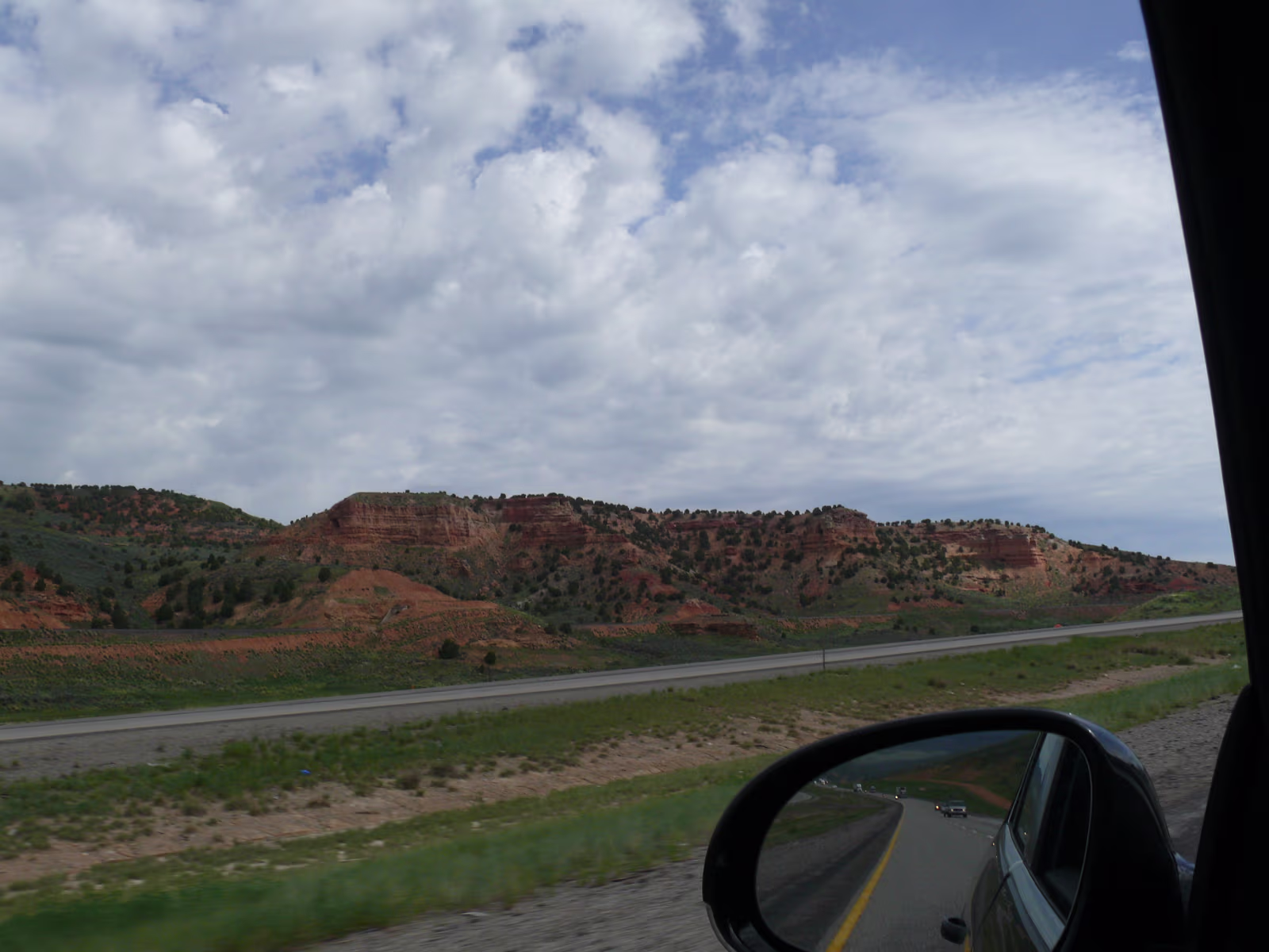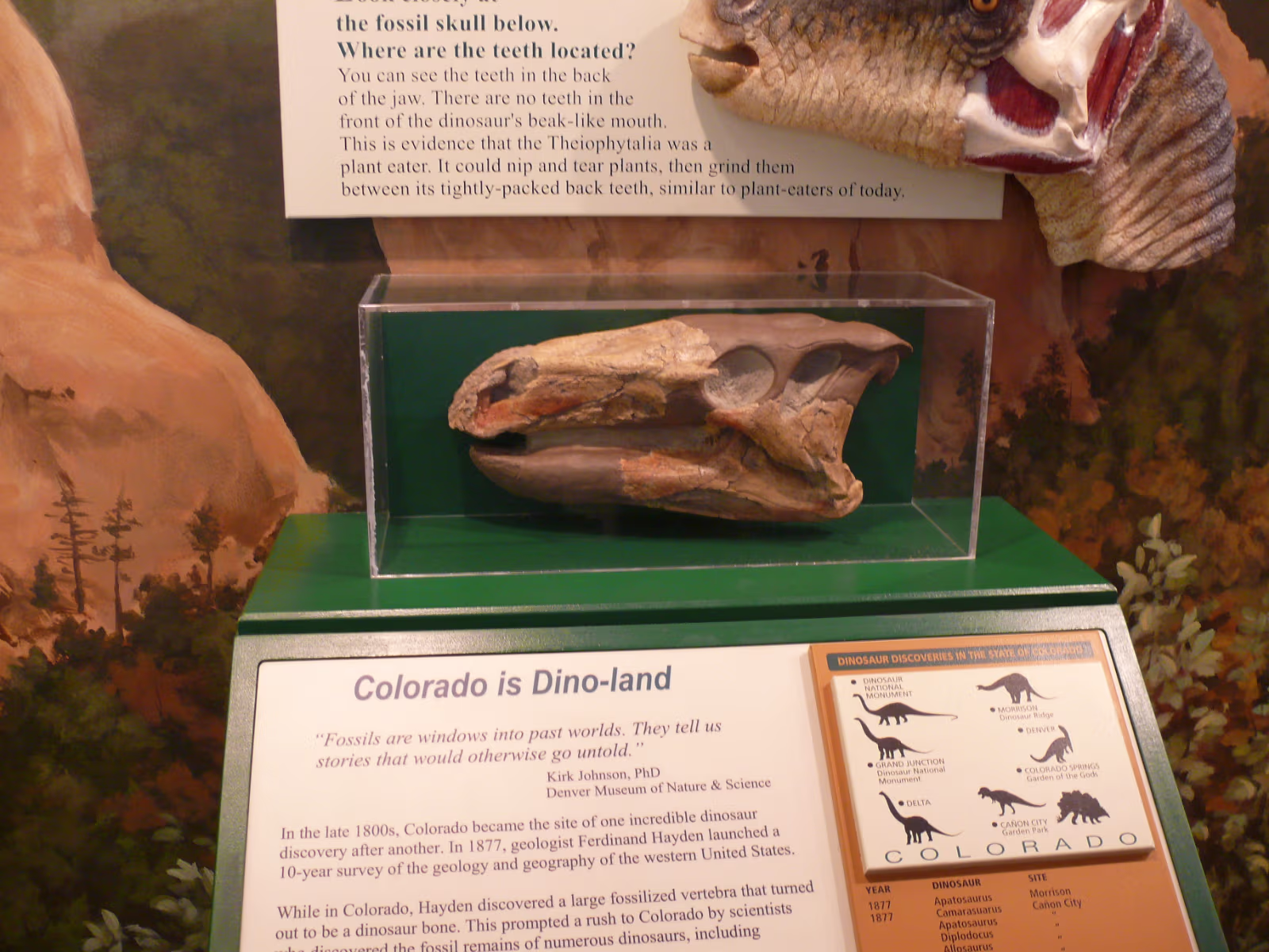 More snowy mountains on the way to Colorado. We like their motto! Red rocks in Utah. Unique formations in Utah. Typical western scene. Broken fence, sagebrush, hills in the distance. Colorado at last! Garden of the Gods, is impressive even from the road. Dinosaur skull in the visitor center. Can you find the teeth? Garden of the Gods, we are ready to begin a day of sightseeing. Garden of the Gods and Pike's Peak. We'll visit both today. The unique rocks here gave the place its name. The nature center was a nice experience. A fine day is in store. Red and gray are different types of rock, but so close together. Look at how vertical these are, like towers. Rock forest. Look at the thin layers behind Hanhan. Each just came up from the Earth. Kissing Camels. It's getting hot out here and it's only 11:30. This used to be a chuckwagon dinner area. Labels Oregon, the Beaver State