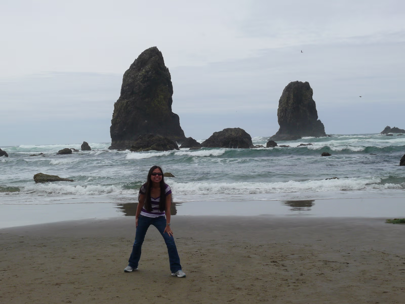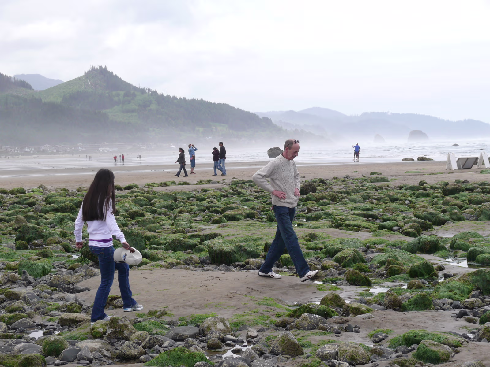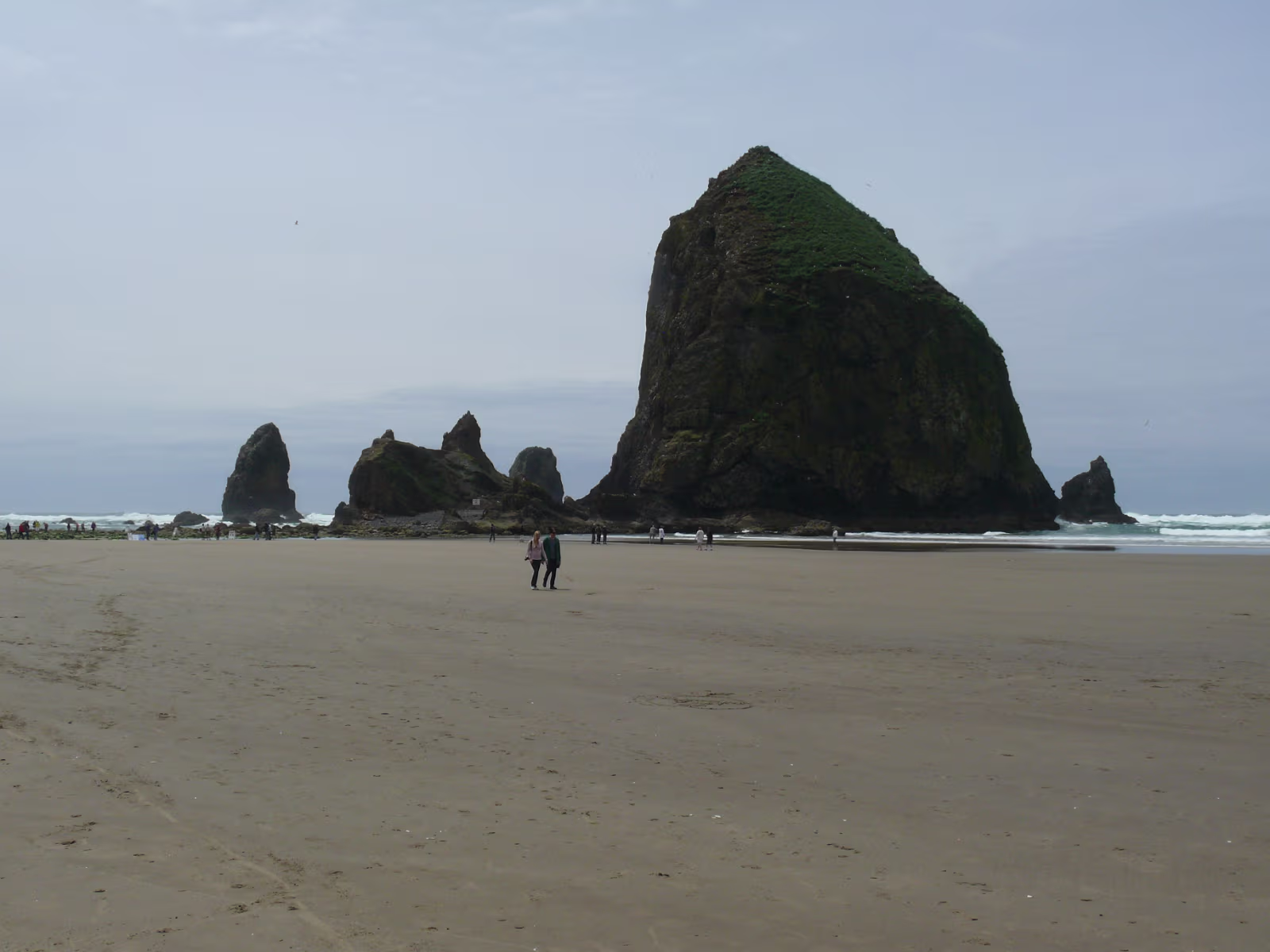 One of the huge Sitka Spruce trees along the Oregon coast. Examining the many rules at Cannon Beach. Hanhan is finally at the Pacific Ocean! Haystack Rock. The whole coast is rocky, but this is the most famous. Hanhan & John bearking the law stepping on the rocks. Tidal pools. Can't get near them as the Beach Police will come hollar at you. Watch for waves Hanhan! Enjoying the beach. Hanhan would not get in the water, just get her finger wet. A time honored tradition, writing your name in the sand. A last look at Haystack. The waves make a nice picture and a nice sound. The lighthouse to warn ships of the danger. In case of Tsunami, break glass! Seaside Oregon. End of the Lewis and Clark Trail. We have followed the entire trail now. Labels Mt. Hood & Multnomah Falls