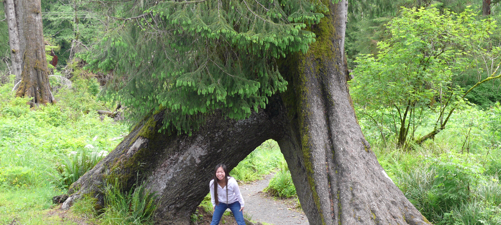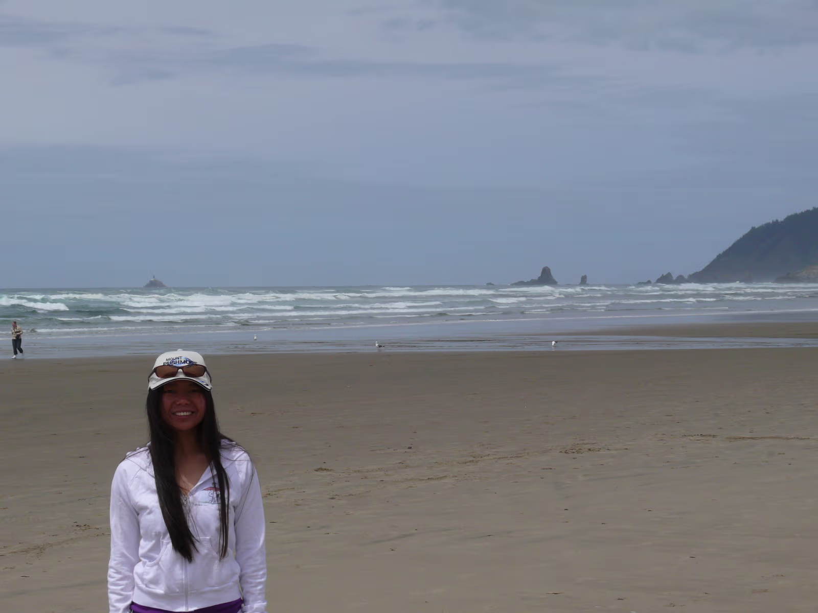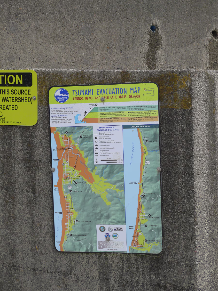 One of the huge Sitka Spruce trees along the Oregon coast. Examining the many rules at Cannon Beach. Hanhan is finally at the Pacific Ocean! Haystack Rock. The whole coast is rocky, but this is the most famous. Hanhan & John bearking the law stepping on the rocks. Tidal pools. Can't get near them as the Beach Police will come hollar at you. Watch for waves Hanhan! Enjoying the beach. Hanhan would not get in the water, just get her finger wet. A time honored tradition, writing your name in the sand. A last look at Haystack. The waves make a nice picture and a nice sound. The lighthouse to warn ships of the danger. In case of Tsunami, break glass! Seaside Oregon. End of the Lewis and Clark Trail. We have followed the entire trail now. Labels Mt. Hood & Multnomah Falls
